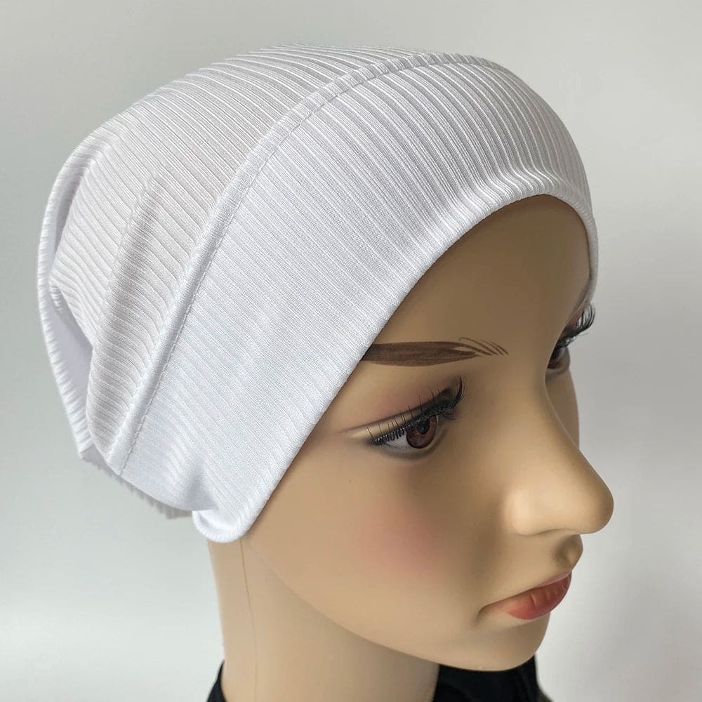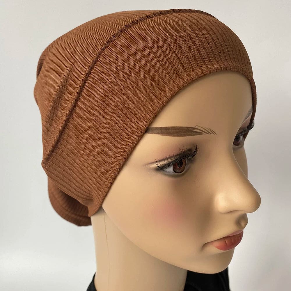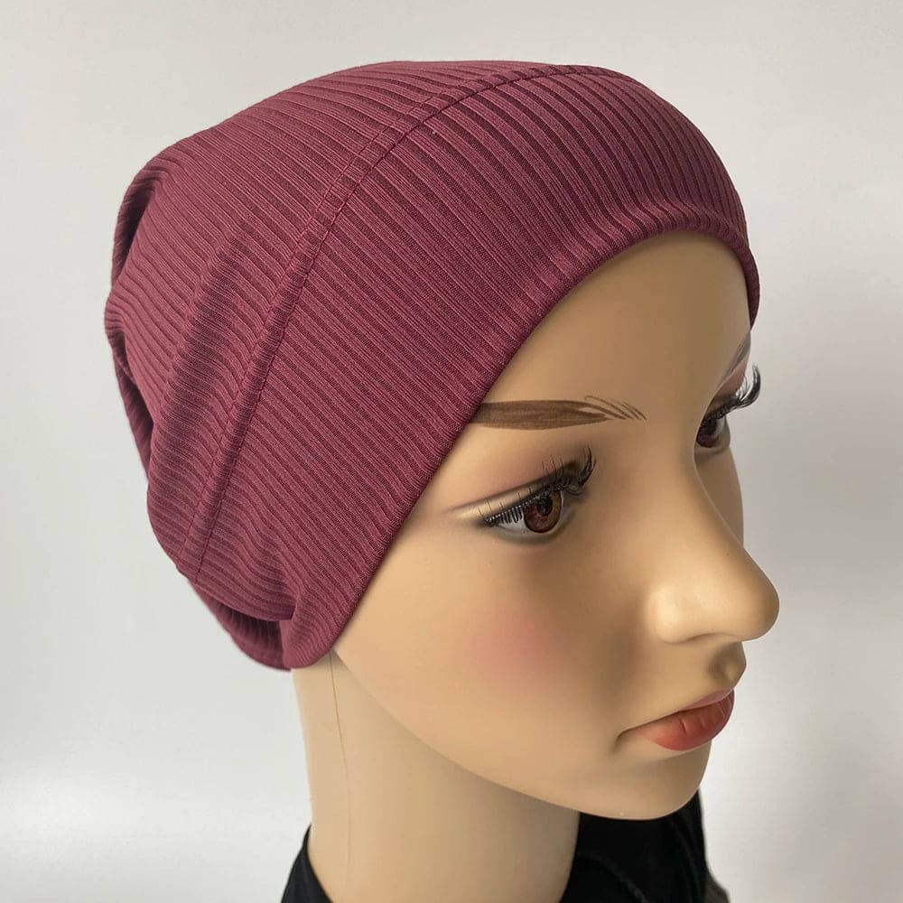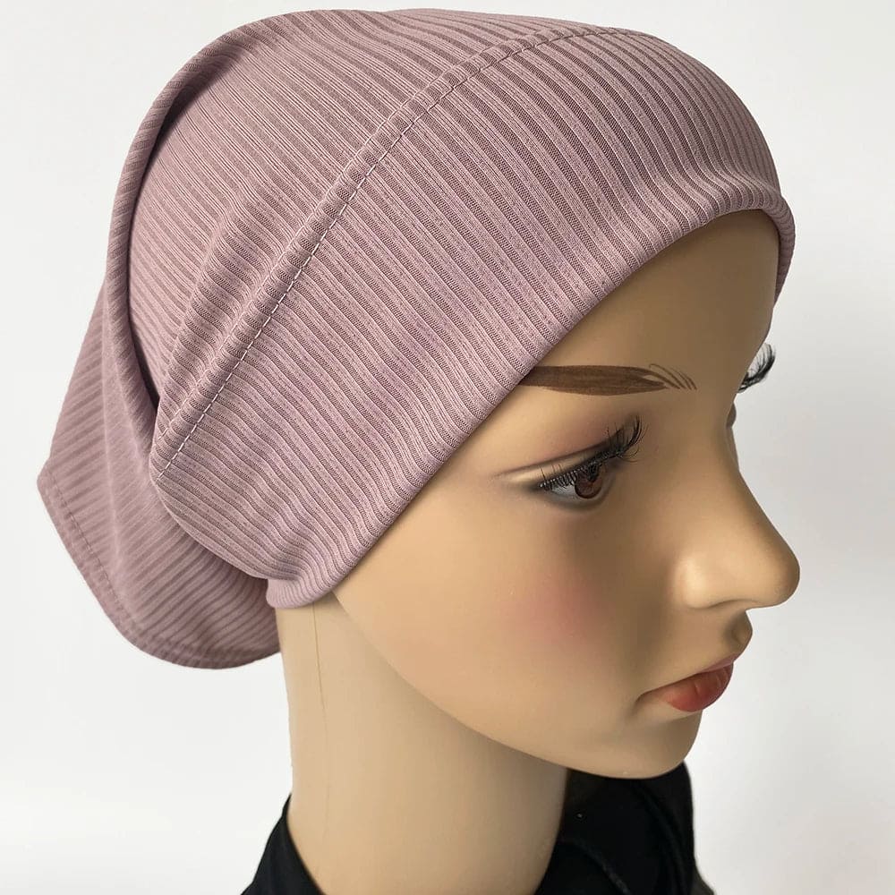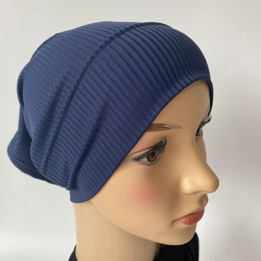 This ribbed jersey undercap is perfect for wearing underneath any of our hijabs as an 'under scarf' to help maintain your hijab style all day, prevent slippage, and prevent hair loss and scalp irritation.